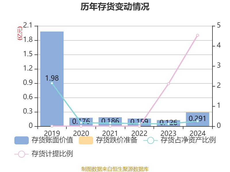 从存货变动来看,截至2024年末,公司存货账面价值为2906.17万元,占净资产的0.25%,较上年末增加1647.16万元。其中,存货跌价准备为138.03万元,计提比例为4.53%。