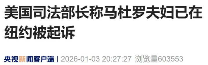 央视新闻消息:当地时间1月3日炒股配资学习,美国司法部长邦迪表示,委内瑞拉总统马杜罗和他的妻子已在纽约被起诉。