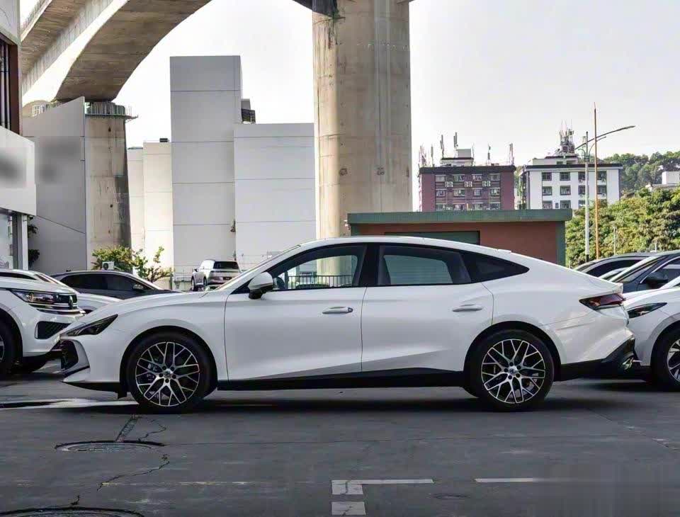 外观方面,新车深耕轿跑核心设计语言,宽体低趴的车身姿态搭配精准勾勒的豹跃肩线,从车头延伸至车尾的流畅线条,既强化了整车的动感张力,又优化了风阻系数。前脸部分,数字猎瞳LED大灯造型锐利,灵感源自猫科动物瞳孔的自适应发光逻辑,点亮后辨识度拉满,搭配熏黑点阵式中网格栅与三段式前唇,不仅提升了视觉冲击力,更增强了底部空气动力学表现,让运动气场扑面而来。