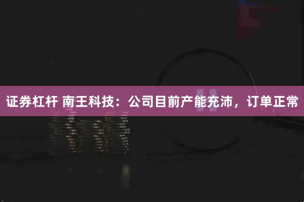 证券日报网讯南王科技(301355)6月16日在互动平台回答投资者提问时表示证券杠杆,公司目前产能充沛,订单正常。公司未来规划请以公司在指定信息披露媒体披露的公告和定期报告为准。